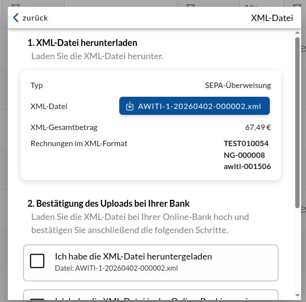 Der Buchungslauf erfolgt über eine generierte XML-Datei, die im Online-Banking des Treuhandkontos importiert wird.