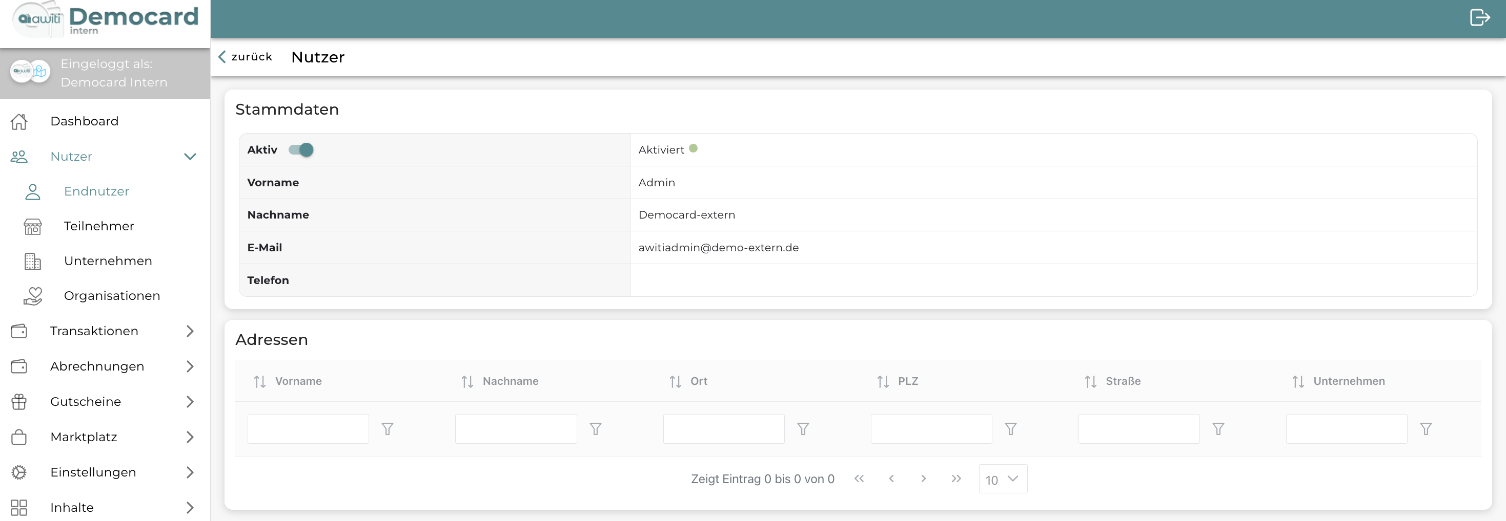 Definition und Übersicht der registrierten Endnutzer der Awiti-Plattform sowie Verwaltungsfunktionen im Administrationspanel.