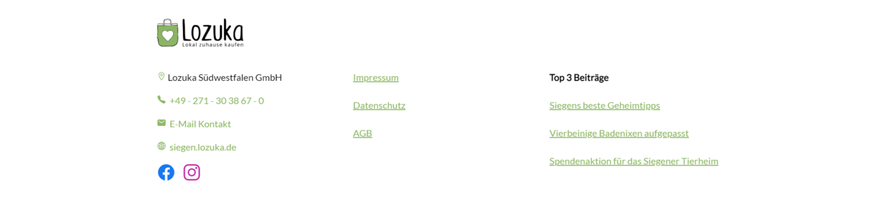 "Spalte 1" enthält die Betreiberinformationen (Adresse, Kontakt und Social Media Verlinkungen)