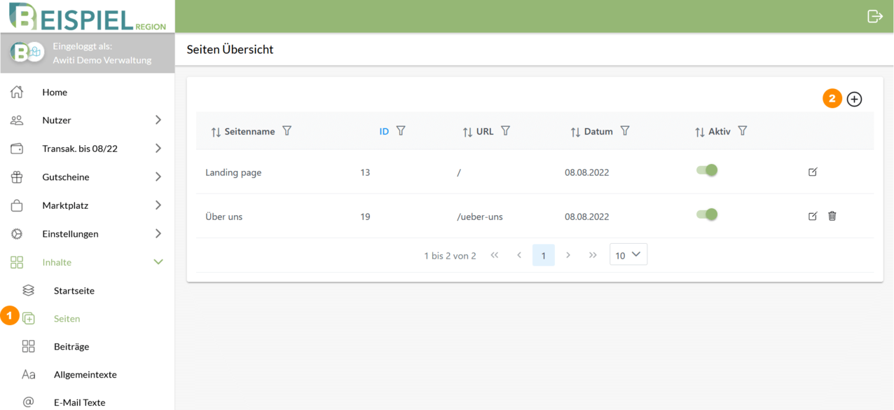 Sie sehen nun eine Übersicht aller vorhandenen Seiten