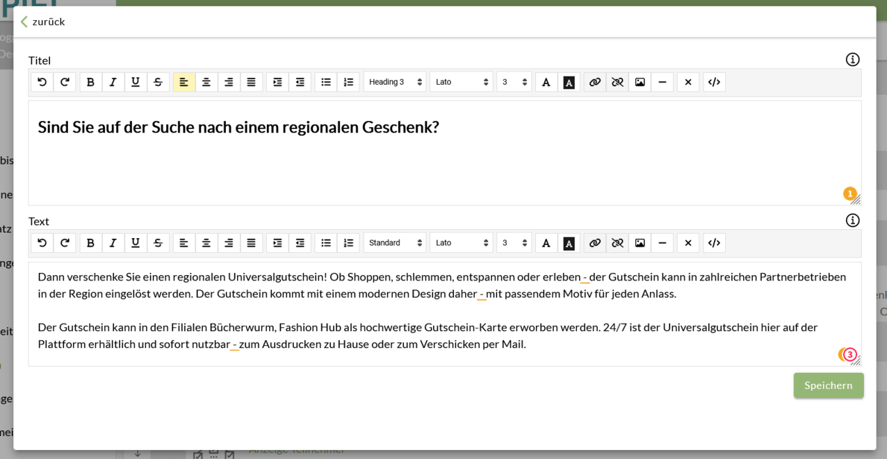 Professionelle Textgestaltung mit flexiblen Formatierungsoptionen und strukturierten Text-Blocks für optimale Inhalte.