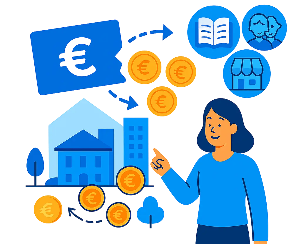 Einlösung bei lokalen Händlern: Der Gutschein funktioniert bei kleinen und mittelgroßen Unternehmen in der Region – das stärkt die emotionale Bindung und hält die Kaufkraft vor Ort.