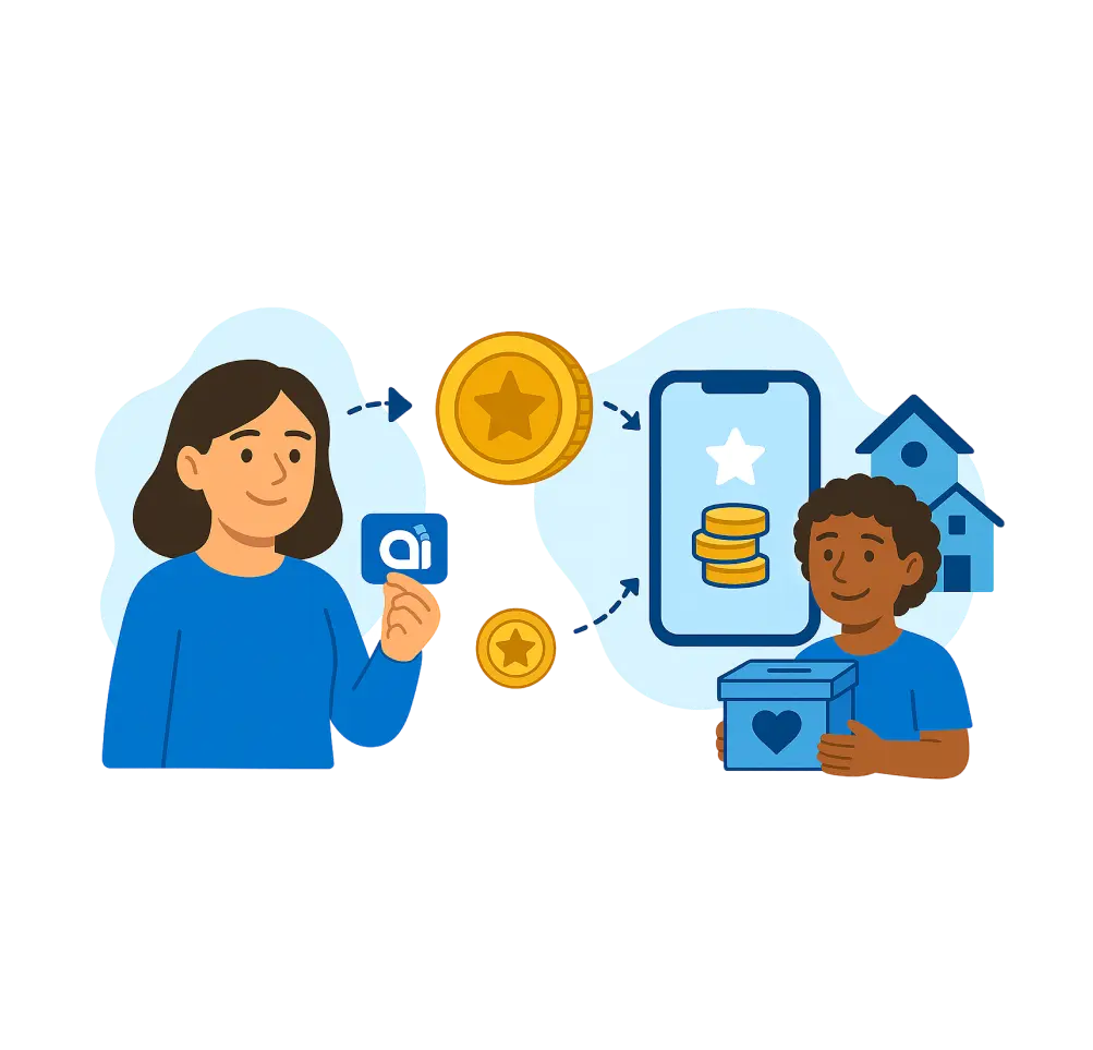 Mit jedem Einkauf sammeln Kund:innen automatisch Bonuspunkte, die sie einlösen oder an lokale Projekte spenden können – einfach und fair.