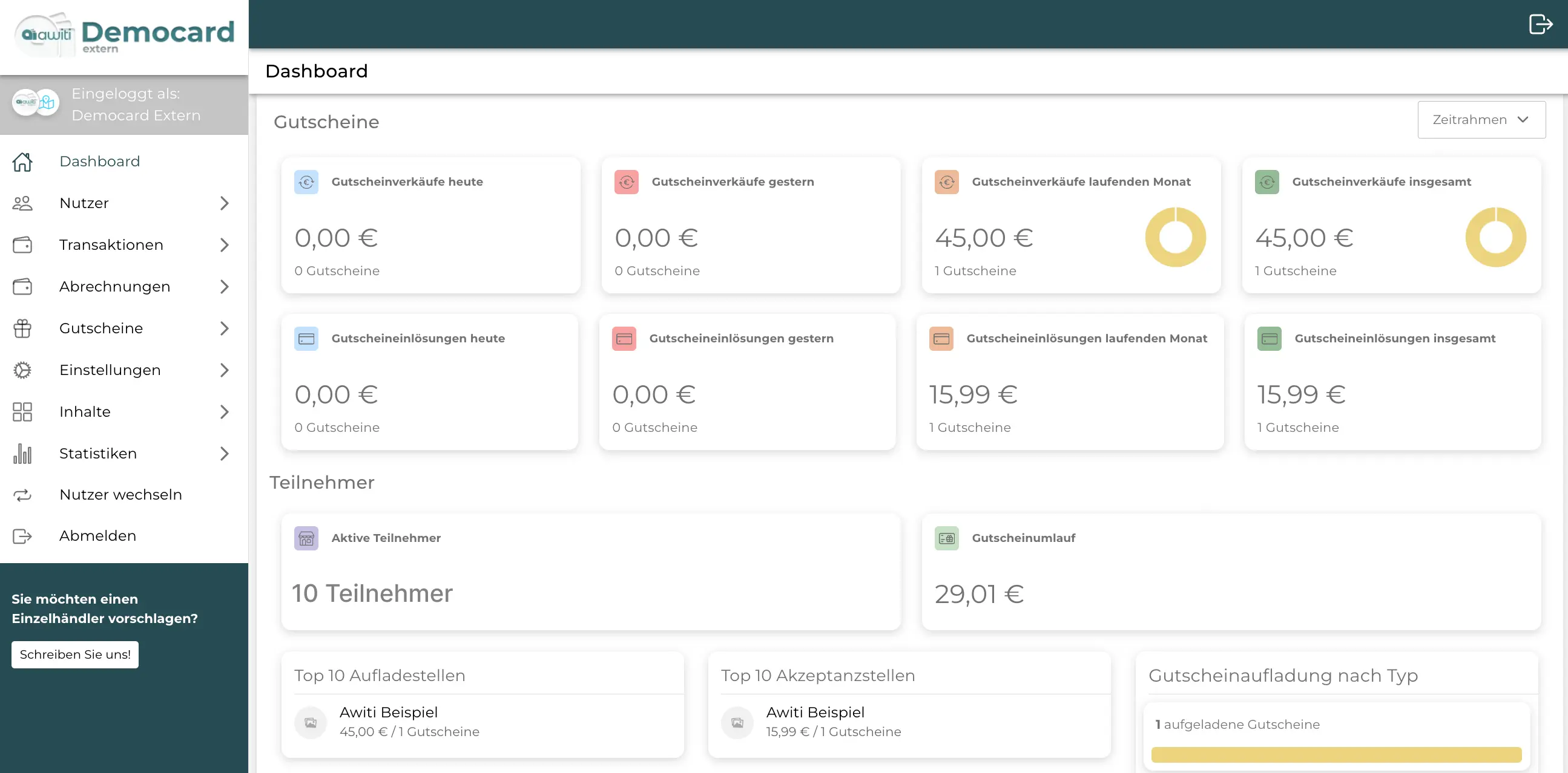 Alle Guthaben und Umsätze sind jederzeit transparent und in Echtzeit verfügbar.
